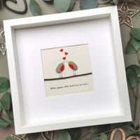 This is the perfect gift to remember the loved ones.. Made out of pebbles and wood to create robins on logs with the quote